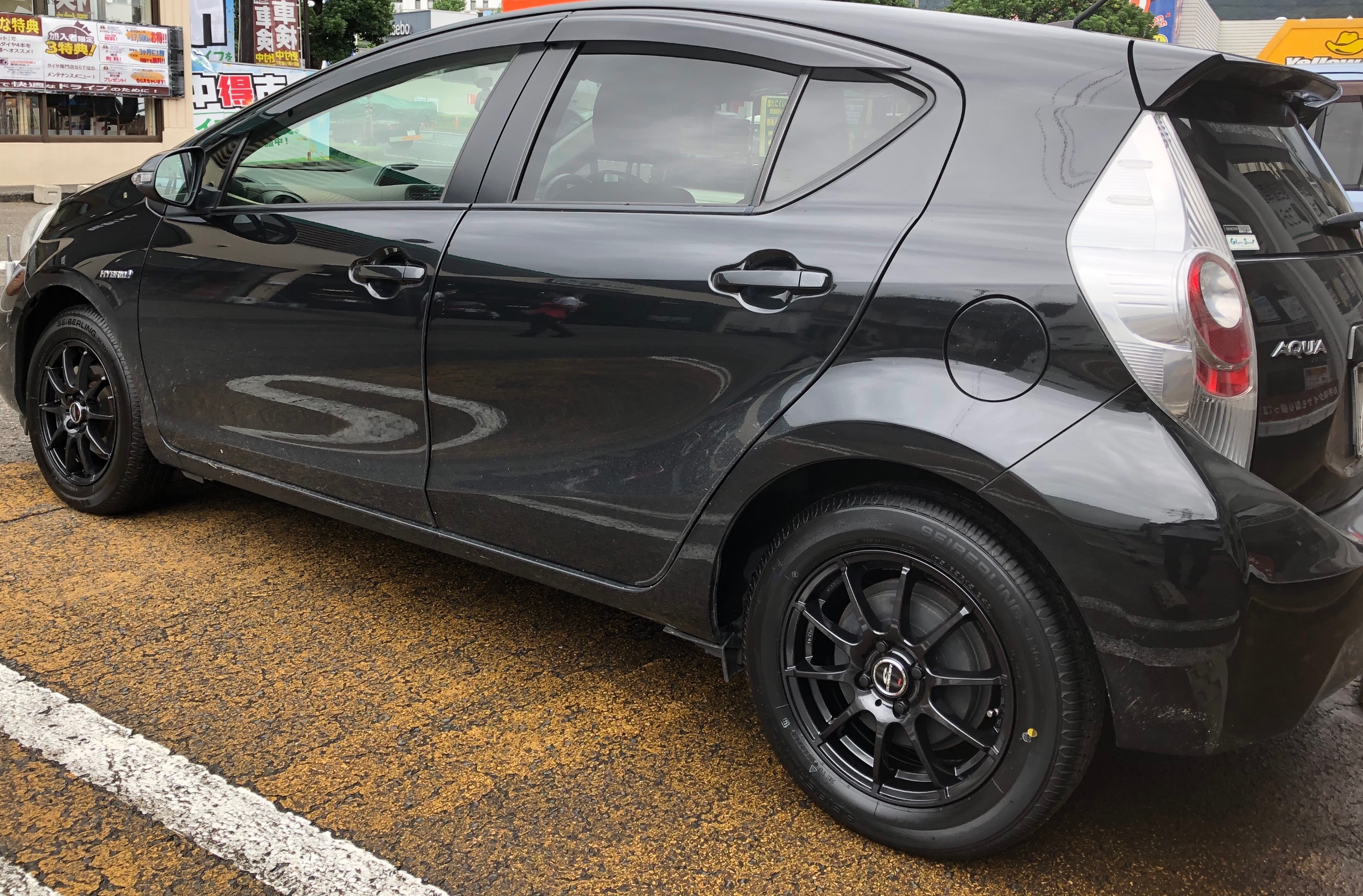 アクアに15インチのブラックカラーのアルミホイール装着 トヨタ アクア ホイール タイヤ ホイール関連 タイヤ ホイール交換 pit作業関連 タイヤ館 岐阜 岐阜県のタイヤ カー用品ショップ タイヤからはじまる トータルカーメンテナンス タイヤ館グループ
